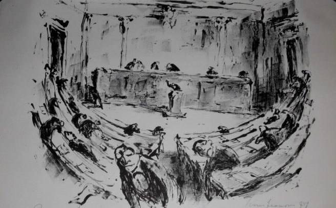 Bild: Hans Fronius “ Das Parlament“ Probedruck 1977